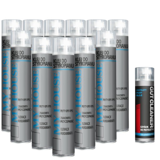 - 11 szt. Klej do styropianu MY HOUSE 750 ml, który zapewni solidne i trwałe przyklejenie izolacji do podłoża o powierzchni.