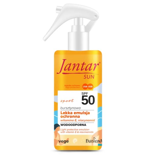 JANTAR SUN SPORT Bursztynowa lekka emulsja ochronna z witaminą E i niacynamidem SPF 50 zapewnia wysoką ochronę przeciwsłoneczną dedykowaną osobom aktywnym.