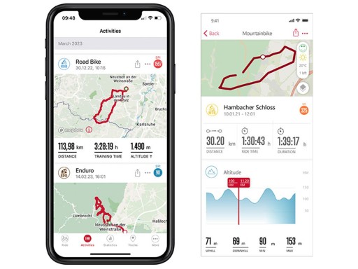 Analiza danych może odbywać się zarówno na urządzeniu ROX 12.1 EVO, jak i na smartfonie. Dzięki aplikacji SIGMA RIDE rowerzyści mogą przesyłać swoje dane poprzez BLE z ROX 12.1 EVO do smartfona, zbierać dane treningowe i śledzić statystyki z ostatnich tygodni, miesięcy, a nawet lat. Aplikacja RIDE jako inteligentny towarzysz ROX 12.1 EVO pomaga także jeszcze wygodniej skonfigurować urządzenie, zarządzać ścieżkami z różnych platform i przesyłać je do ROX 12.1 EVO. Oprócz profili graficznych na poszczególne wartości, np. dla miernika mocy lub tętna, mapa ciepła w różnych kolorach pokazuje wydajność na torze. Rowerzyści mogą szybko dzielić się swoimi doświadczeniami i sukcesami w sieciach społecznościowych oraz udostępniać dane treningowe i ścieżki innym dostawcom.