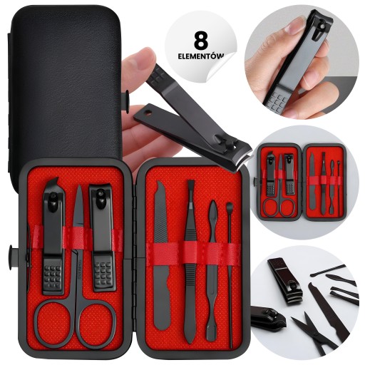 Zestaw Do Pedicure Manicure Paznokci 8 elementów Pilnik Pęseta Etui Cążki