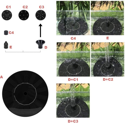 ⛲ 6 różnych zraszaczy wody: 6 różnych dysz może spełnić Twoje różne wymagania dotyczące wysokości słupa wody lub kształtu słupa wody. Wysokość można regulować poprzez zmianę dysz, aby uniknąć rozlewania się z basenu. Głowicę natryskową można łatwo zmienić.