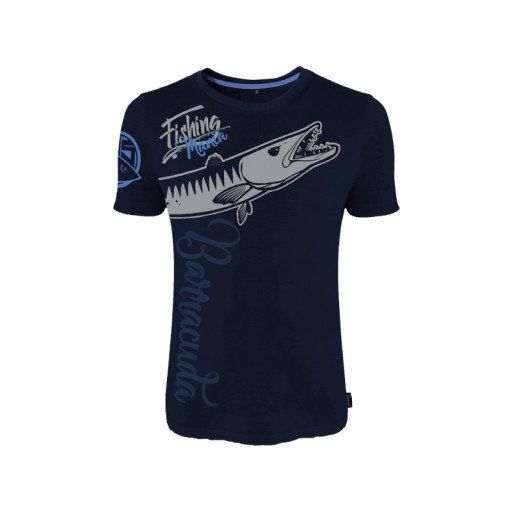 Koszulka Fishing Mania została wykonana ze 100% bawełny, aby zapewnić delikatne i przewiewne uczucie podczas jej noszenia. Ta koszulka jest wykonana w klasycznym stylu, posiada okrągły, prążkowany kołnierzyk, krótkie rękawki i regularny krój; pasuje idealnie do wyjścia na ryby i codziennego noszenia. Kontrastująca opaska wchłaniająca pot jest widoczna na kołnierzyku, w tym samym stylu jak druk na przodzie, zapewniając modne wykończenie, które wraz z tkaną naszywką po lewej stronie sprawia, że produkt ma więcej szczegółów. Koszulka Fishing Mania to głębokie źródło inspiracji, zawiera duży wydruk graficzny na klatce piersiowej z ulubioną rybą użytkownika. Kolekcja Fishing Mania zawiera wiele artykułów, które można nosić razem w celu zapewnienia stylowego wyglądu (bluza z kapturem, koszulka, spodnie dresowe, czapka, a także damskie legginsy).
