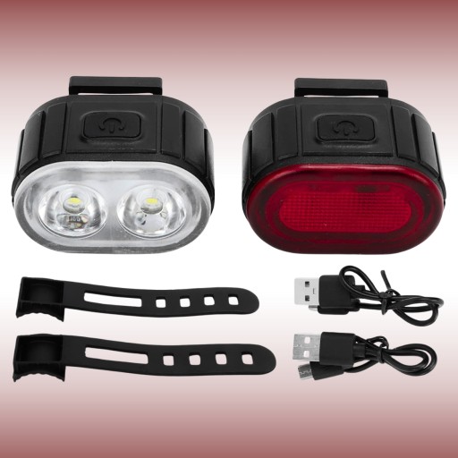 MOCNA LAMPKA ROWEROWA PRZEDNIA TYLNA LED WODOODPORNA AKUMULATOR USB ZESTAW