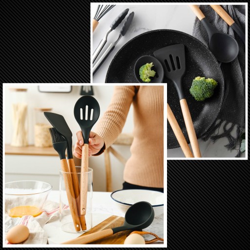НАБОР КУХОННОЙ ПОСУДЫ СИЛИКОНОВАЯ ДЕРЕВЯННАЯ КУХОННАЯ ПОСУДА 12 EL