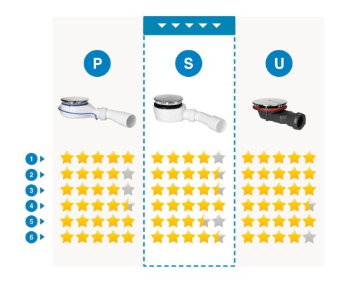 Tabela porównawcza właściwości użytkowych dostępnych wariantów syfonów