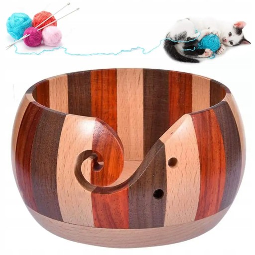 🧶 Każda miska przędzy jest starannie wykonana ręcznie z naturalnego palisandru indyjskiego, który jest bardzo trwały i bezpieczny.Gładka powierzchnia zapewnia płynne i równomierne wciąganie nici do otworu bez zacinania się.