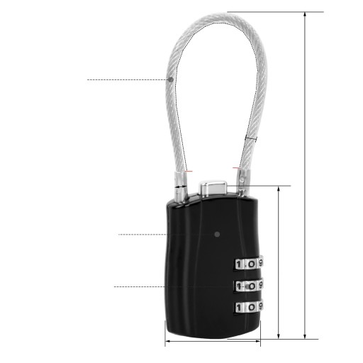 Co otrzymujesz: 2 sztuki x 3-cyfrowe zamki szyfrowe w kolorze czarnym. Dostępnych jest więc 1000 opcji kodu do wyboru.
