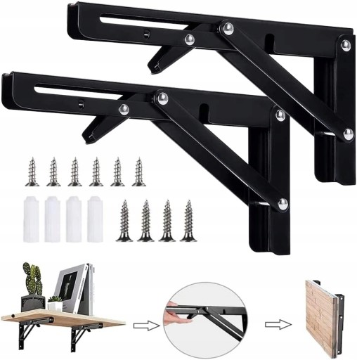 СКЛАДНАЯ ОПОРА ДЛЯ ПОЛКИ L 300 мм ЧЕРНЫЙ ДЕРЖАТЕЛЬ ПОЛКИ 2 ШТ. УГЛОВОЙ КРОНШТЕЙН