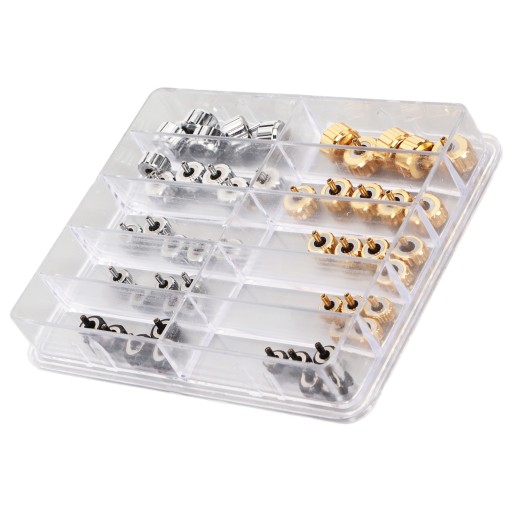 3. Zestaw do naprawy zegarków: Zestaw zawiera plastikowy pojemnik z 10 oddzielnymi przegródkami do gromadzenia i przechowywania koron o różnych rozmiarach i kolorach.