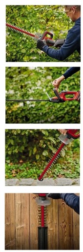 - Łatwe przycinanie żywopłotów; nożyce do żywopłotu Einhell GC-CH 18/50 Li-Solo są małe, lekkie i poręczne. Ich waga wynosząca zaledwie 2,2 kg czyni je najlżejszymi w swojej kategorii. Dzięki specjalnie dobranej pozycji akumulatora nożyce do żywopłotu są optymalnie wyważone, a za pomocą dużego przedniego uchwytu i obrotowego tylnego uchwytu można ergonomicznie wykonywać zarówno pionowe, jak i poziome cięcia przy użyciu obu rąk.