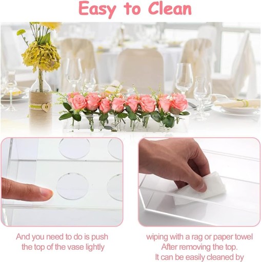 Prostokątny wazon akrylowy na kwiaty, długi dekoracyjny przezroczysty wazon na kwiaty na wesela, imprezy, wystrój stołu do jadalni