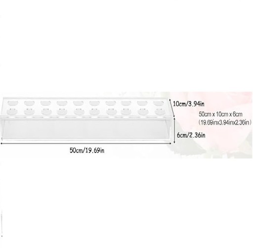 Прозрачная акриловая прямоугольная ваза для цветов, 50 см.