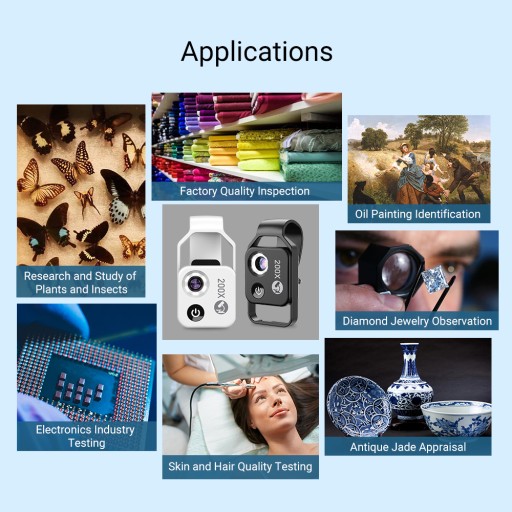 - [Szerokie zastosowanie] Szeroko stosowane w badaniach i badaniach roślin i owadów, identyfikacji obrazów olejnych, obserwacji biżuterii diamentowej, antycznej ocenie jadeitu, testowaniu przemysłu elektronicznego, testowaniu jakości skóry i włosów itp.