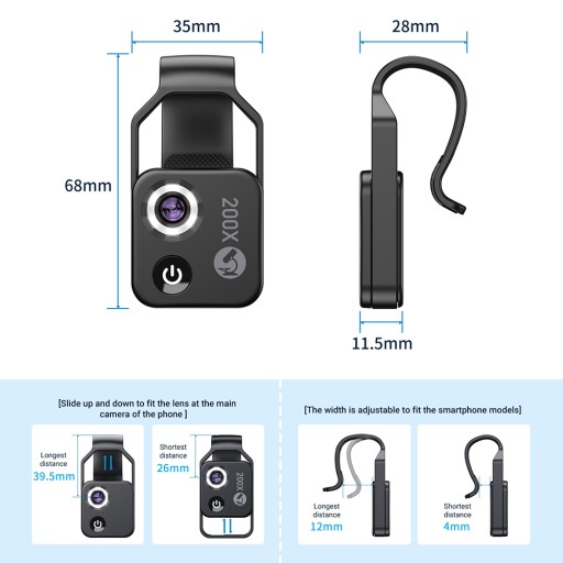 - [Profesjonalna soczewka mikroskopu do smartfona] Powiększenie 200X, z wielowarstwową powłoką, odkrywaj mikroświat i nagrywaj go z wyraźnymi zdjęciami i udostępniaj je rodzinie i znajomym.