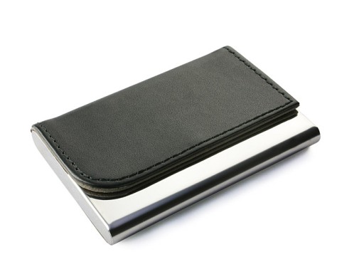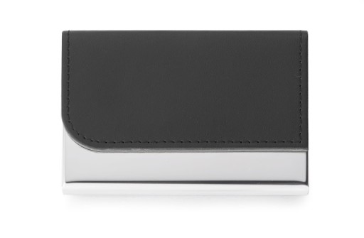- Elegancki wizytownik z ekoskóry PU z zapięciem na magnes. Mieści 20 wizytówek.