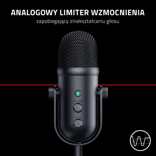 Razer Seiren V2 Pro jest zaprogramowany tak, by automatycznie zapobiegać przesterowaniu i szczytowemu poziomowi dźwięku, dlatego nie musisz się martwić załamaniami czy zakłóceniami głosu podczas transmisji.