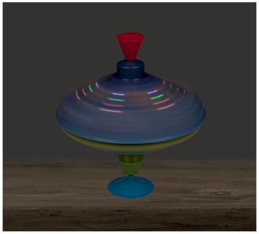 Duży metalowy bączek do kręcenia to tradycyjna zabawka, którą małe dzieci uwielbiają. Teraz w oryginalnej odsłonie z motywem kosmosu. Po jego zakręceniu kolory zlewają się, tworząc wizualnie obracającą się dookoła tęcze. Co wyróżnia naszego kosmicznego bąka od innych to zamontowane w nim żarówki LED. Pod wpływem siły odśrodkowej gdy zakręcimy naszego bączka naszym oczom ukażą się śliczne kolory, tworzące całe świecące pasy :) Efekt z pewnością zachwyci wasze brzdące, tym bardziej gdy puścimy bączka w nieoświetlonym pomieszczeniu.