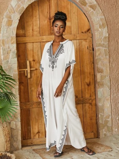 ORYGINALNA DŁUGA LETNIA TUNIKA PAREO SUKIENKA NARZUTKA W STYLU BOHO HAFT