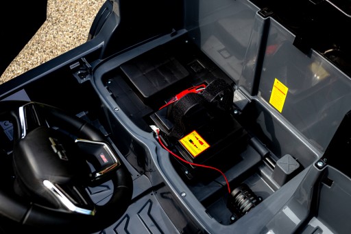 Producenci Chevroleta zastosowali bardzo wygodne rozwiązanie w tym modelu. Pod siedziskiem znajduje się bateria 12V o dużej pojemności tj. 14ah, która w bezpiecznej skrzynce z rączką. Umożliwia to wyciąganie baterii i ładowanie jej w domu przez dodatkowe wejście na ładowarkę. Standardowy proces ładowania odbywa się przez gniazdo ładowanie , którego wejście znajduje się przy siedzisku po prawej stronie. Oczywiście każde wysyłane przez nas auto jest wyposażone w baterię oraz ładowarkę.