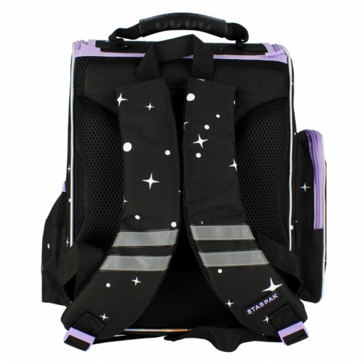 Zalety produktu: jednokomorowy tornister typu hardbag wyposażony jest w system ergonomicznych pleców i ramion pokrytych gąbką zapewniającą swobodny przepływ powietrza i komfort użytkowania. Posiada wewnętrzny organizer, który ułatwia utrzymanie porządku. Dodatkowo, tornister został wyposażony w obszerną, przednią kieszeń na zamek i dwie mniejsze kieszenie boczne, z których jedna zapinana jest na zamek, a druga wykonana z siateczki, jest idealna na bidon lub butelkę z napojem. Usztywniany, pokryty gumą dół zabezpiecza przed brudem i wilgocią. Z przodu i po bokach zostały wszyte elementy odblaskowe zapewniające dziecku bezpieczeństwo. Tornister w czarnym kolorze z holograficzną grafiką. Wygodny i funkcjonalny Tornister szkolny STARPAK z grafiką z Jednorożcem. Użytkowanie takiego plecaka to czysta przyjemność. Zapoznaj się również z innymi produktami STARPAK z tej serii. Produkt jest wyrobem tekstylnym. Przeznaczony dla dzieci w wieku: 3 . Wymiary produktu wys. x szer. x gł. cm : 37x32x22, waga produktu kg : 0,88 kg. Tornister pakowany w folię. W kartonie zbiorczym po 6 szt.
