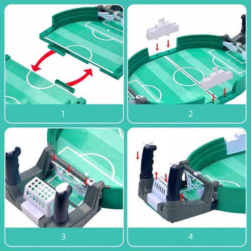 3️⃣ ⚽ [Interaktywne minizabawki piłkarskie]: Nasze boisko do piłki nożnej ma rozmiar 41,5 x 20 cm, co sprawia, że jest łatwe w użytkowaniu i obsłudze. Montaż zestawu jest prosty i zajmuje zaledwie kilka minut. W zestawie znajdziesz 1 boisko do piłki nożnej, 6 piłek nożnych, 4 uchwyty kontrolne, 2 sieci bramkowe oraz 2 ogrodzenia, które zabezpieczą boisko.
