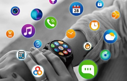 - Inteligentne funkcje: Inteligentne powiadomienia (powiadomienia o połączeniach, SMS-ach, Gmailu i aplikacjach na smartfony), synchronizacja pogody, sterowanie muzyką i aparatem w smartfonie, funkcja Znajdź mój telefon i zegarek, tryby Nie przeszkadzać, alert o siedzącym trybie życia, przypomnienie o piciu wody, kalendarz, kalkulator, wizytówka, pobieranie aplikacji