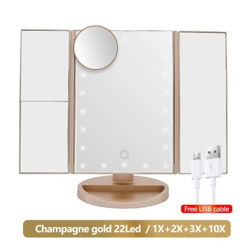 Foldable Makeup Mirror With LED Light 3 Folding 1X 2X 3X Desktop Vanity Mir Rodzaj stojące