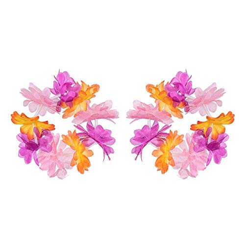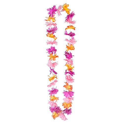 Zestaw hawajski zawiera spódnicę o długości 40 cm z gumką w pasie, wymiary 64-94 cm, kwiatową opaskę na głowę, wieniec i 2 bransoletki. Popularny zestaw na letnie hawajskie party.