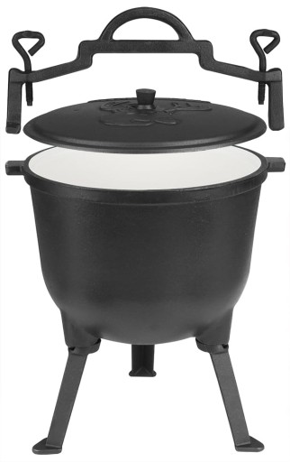Kociołek może stać bezpośrednio w ognisku lub być zawieszony nad ogniskiem.
