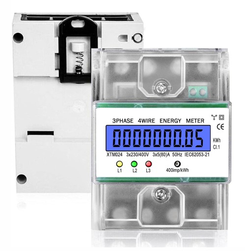 ДВУНАПРАВЛЕННЫЙ СЧЕТЧИК ЭНЕРГИИ, 3-ФАЗНЫЙ, 230 В/400 В, 5(80) А, ТРЕХФАЗНЫЙ XTM024