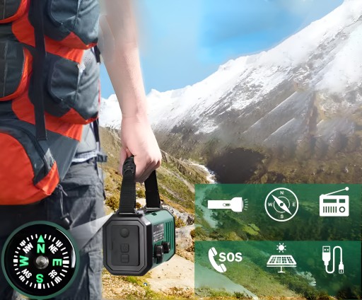 Mimo minimalistycznego designu, urządzenie oferuje bogactwo funkcji, takich jak radio, latarka, ładowarka, alarm SOS i kompas, zapewniając kompleksowe wsparcie w każdej sytuacji.