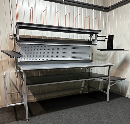 - Regulowana wysokość od podłoża do blatu roboczego w zakresie 85-90 cm,
