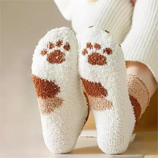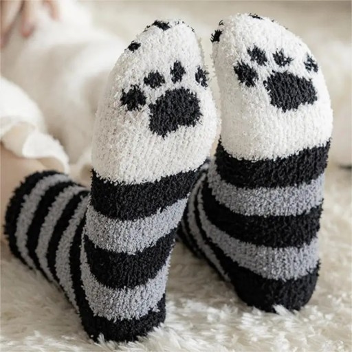 GRUBE SKARPETY DAMSKIE CIEPŁE PUSZYSTE SKARPETKI KOCIE ŁAPKI KOTA 6 par łap
