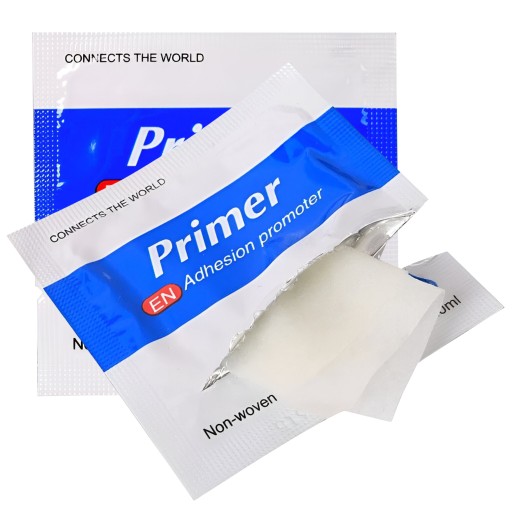Dołączonymi do zestawu chusteczkami Primer przetrzyj dokładnie miejsce aplikacji, chusteczki są niezbędne do lepszej aktywacji kleju.