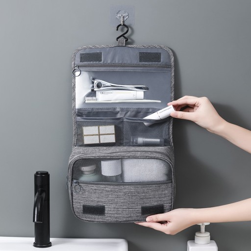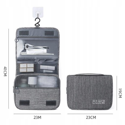 To wspaniały gadżet nie tylko dla miłośników podróży, ale także dla tych, którzy cenią sobie porządek. Dzięki haczykowi możesz zawiesić ją w dowolnym miejscu w łazience i ułożyć wszystkie potrzebne w niej kosmetyki i przybory. Koniec z bałaganem !.