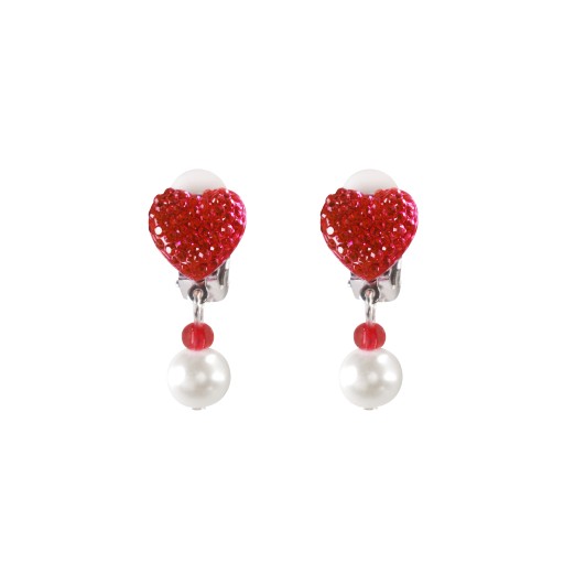 - Kolczyki zapinane na klips, w kształcie czerwonego serduszka z dodatkowym wiszącym koralikiem,