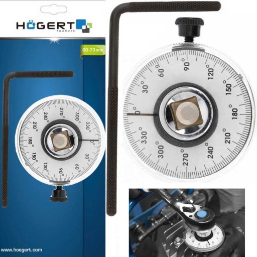 Kątomierz do końcowego dokręcania śrub i nakrętek z określonym naciągiem przez pomiar kąta obrotu, stosowany w przypadku podania kąta dokręcenia powyżej zalecanego momentu obrotu.