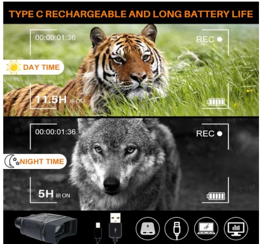 - 【Długa żywotność baterii i akumulator typu C】 Możesz użyć kabla typu C do ładowania gogli noktowizyjnych, nie musisz kupować dodatkowych baterii, jak w przypadku innych elementów gogli noktowizyjnych. Gogle noktowizyjne w trybie noktowizyjnym na podczerwień mogą wytrzymać do 4,5 godziny, a przy wyłączonym noktowizji na podczerwień do 11,5 godziny. Zaspokajaj potrzeby swoich długoterminowych działań.