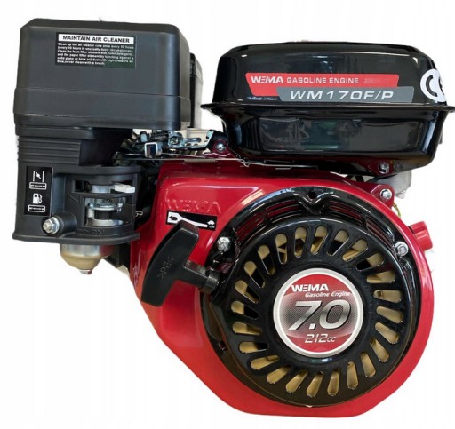 Silnik spalinowy WM170F-Q o mocy 7 KM EURO 5 jest wyrobem znanego producenta i importera sprzętu spalinowego WEIMA. Silniki tego producenta charakteryzuje wysoka jakość użytych materiałów, oraz wykonania, niezawodność i długa żywotność. WEIMA tworząc silniki o większej mocy projektuje je od samego początku, w przeciwieństwie do innych producentów, którzy jedynie powiększają elementy. Dodatkowym atutem tych silników jest produkcja i montaż wszystkich elementów w jednej fabryce. Jest on odpowiednikiem silnika HONDA GX 160. Charakteryzuje go niski poziom hałasu, mniejsze wibracje, oraz niższe emisje spalin bez utraty mocy i wydajności. Został również wyposażony w czujnik oleju w celu zapobiegnięcia awarii silnika. Idealny do pracy w cięższych warunkach. Silnik spalinowy WEIMA posiada wałek z klinem o średnicy 19 mm. Główne cechy i zalety silnika: silnik górnozaworowy - sprawdzona konstrukcja OHV dokładnie wykonane elementy w celu zmniejszenia wibracji płynna regulacja obrotów dzięki specjalnej konstrukcji silnika został zmniejszony poziom hałasu posiada certyfikat CE w trosce o nasze środowisko silnik został wykonany w taki sposób, aby uzyskać jak najniższą emisję spalin chłodzenie powietrzem Łatwość w obsłudze i konserwacji: łatwe sterowanie przepustnicą układ zapłonowy TCI duży zbiornik paliwa, który zapewni nam możliwość dłuższego czasu pracy bez konieczności ciągłego tankowania baku duży korek szyjki wlewu, który ułatwi nam wlewanie paliwa łatwy dostęp do świecy zapłonowej - w przypadku awarii będzie możliwa łatwa i szybka wymiana wytrzymały rozrusznik ergonomiczna oraz łatwa w trzymaniu rączka linki rozruchowej.