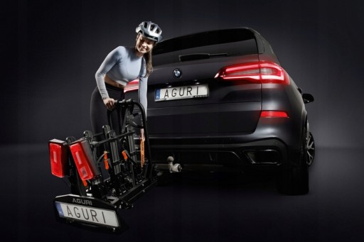 Platforma rowerowa i rowery zabezpieczone indywidualnymi zamkami. Możliwość obciążenia platformy do 60 KG. Regulacja docisku na kuli haka za pomocą śruby regulacyjnej turn & click. Montaż nie wymagający użycia dużej siły. Koła rowerów mocowane za pomocą dłuższych pasków zębatych z systemem szybkiego zacisku, który został zmodernizowany i wzmocniony. Regulowany rozstaw podstaw kół umożliwia przewożenie zarówno dużych jak i małych rowerów, rozstaw osi roweru do 125cm. Odległość pomiędzy rowerami 19cm Zwiększona szerokość rynienki koła do opon max 100mm – 4” Funkcja odchylania platformy zapewnia wygodny oraz szybki dostęp do bagażnika samochodu również z zamontowanymi rowerami. Przycisk uchyłu zlokalizowany na dole platformy – nacisk nogą. Oświetlenie platformy z wtyczką 13PIN, po zastosowaniu odpowiedniego adaptera można podłączyć platformę do gniazda 7PIN ( adaptery dostępne w ofercie Aguri ) Oświetlenie platformy zawiera: Światło pozycyjne, światło stop, kierunkowskazy, podświetlenie tablicy, światło wsteczne, światło przeciwmgielne. Bardziej kompaktowe uchwyty ramy z elastycznym wypełnieniem zabezpieczającym przed porysowaniem ram rowerowych. Średnica ramy rowerowej: min: 20mm, max: 80mm Możliwość montażu uchwytów ramy rowerowej po wstawieniu rowerów. Kółka ułatwiające transportowanie platformy. Przypinany pasek ułatwiający transport.