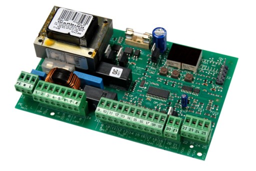- Wyjścia: Lampa ostrzegawcza / Silniki siłowników / Zasilanie akcesoriów 24V dc / Wskaźnik LED zasilania 24V / Samokontrola / Zasilanie elektrozamka 12V ac
