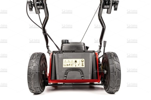 - Pojemny kosz posiada wskaźnik napełnienia, a duże tylne koła ułatwiają manewrowanie kosiarką.