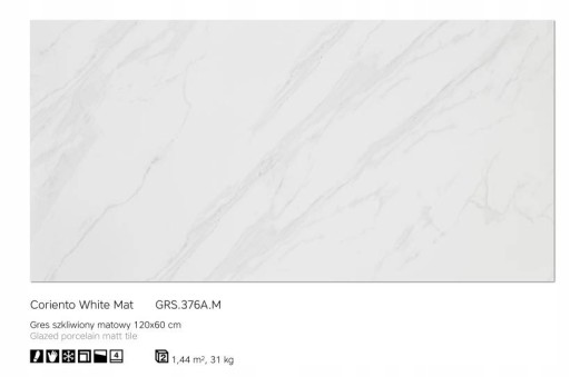 Płytka podłogowa CORIENTO WHITE MAT 60x120 - Cena 99 zł/m2 brutto (Op=1,44m2)