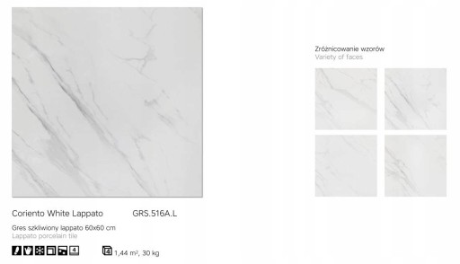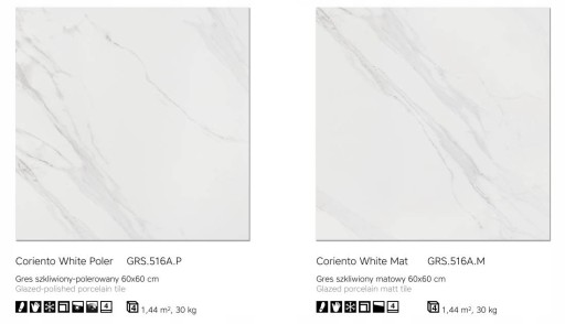 Płytka podłogowa CORIENTO WHITE POLER 60x60 - Cena 79 zł/m2 brutto (Op=1,44m2)