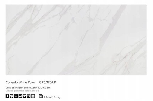 Płytka podłogowa CORIENTO WHITE POLER 60x120 - Cena 99 zł/m2 brutto (Op=1,44m2)