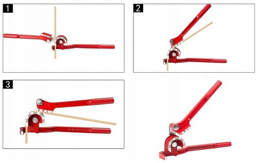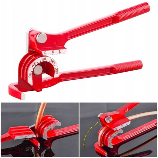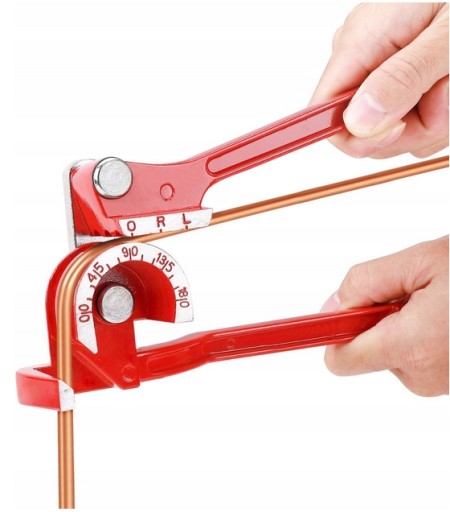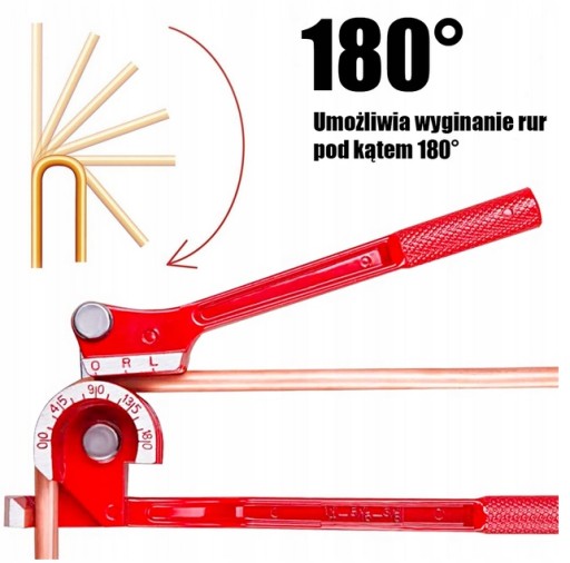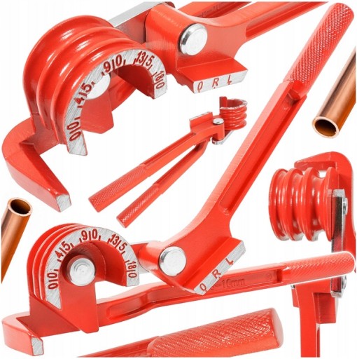 Giętarka do rur 3 w 1. Przeznaczona do wyginania rur o średnicach: 6mm, 8mm, 10mm. Do rur wykonanych z: miękkiej miedzi, mosiądzu, aluminium, miękkiej stali. Umożliwia wyginanie rur pod kątem 180° bez ich zgniecenia. Na korpusie wytłoczone są kąty pozwalające określić stopień wygięcia.