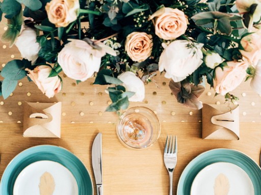 - przepięknie zaprezentuje się rozłożona na białym obrusie – złote wzory odbijają się od białej tkaniny, dając wspaniały efekt dekoracyjny