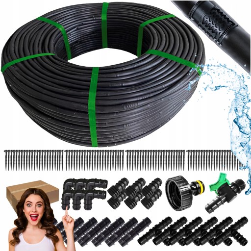 LINIA KROPLUJĄCA nawadnianie kropelkowe 100M + 90 elementów Wąż pocący