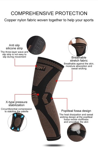 1 шт. длинные медные нейлоновые наколенники для спорта и фитнеса, двусторонние компрессионные пули