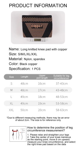 1Pcs * Long knitted knee pad with copper (1pcs,not 1pair)